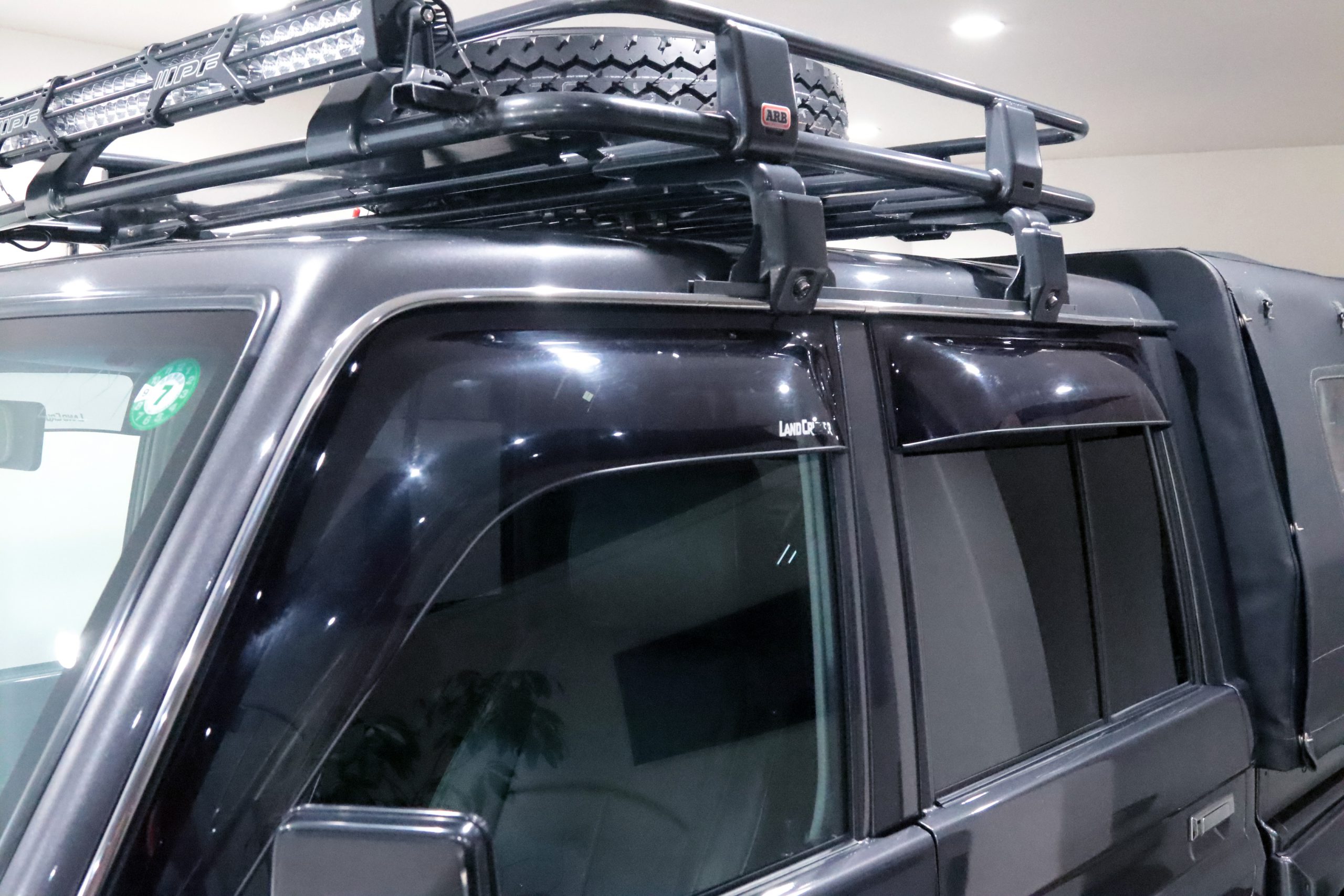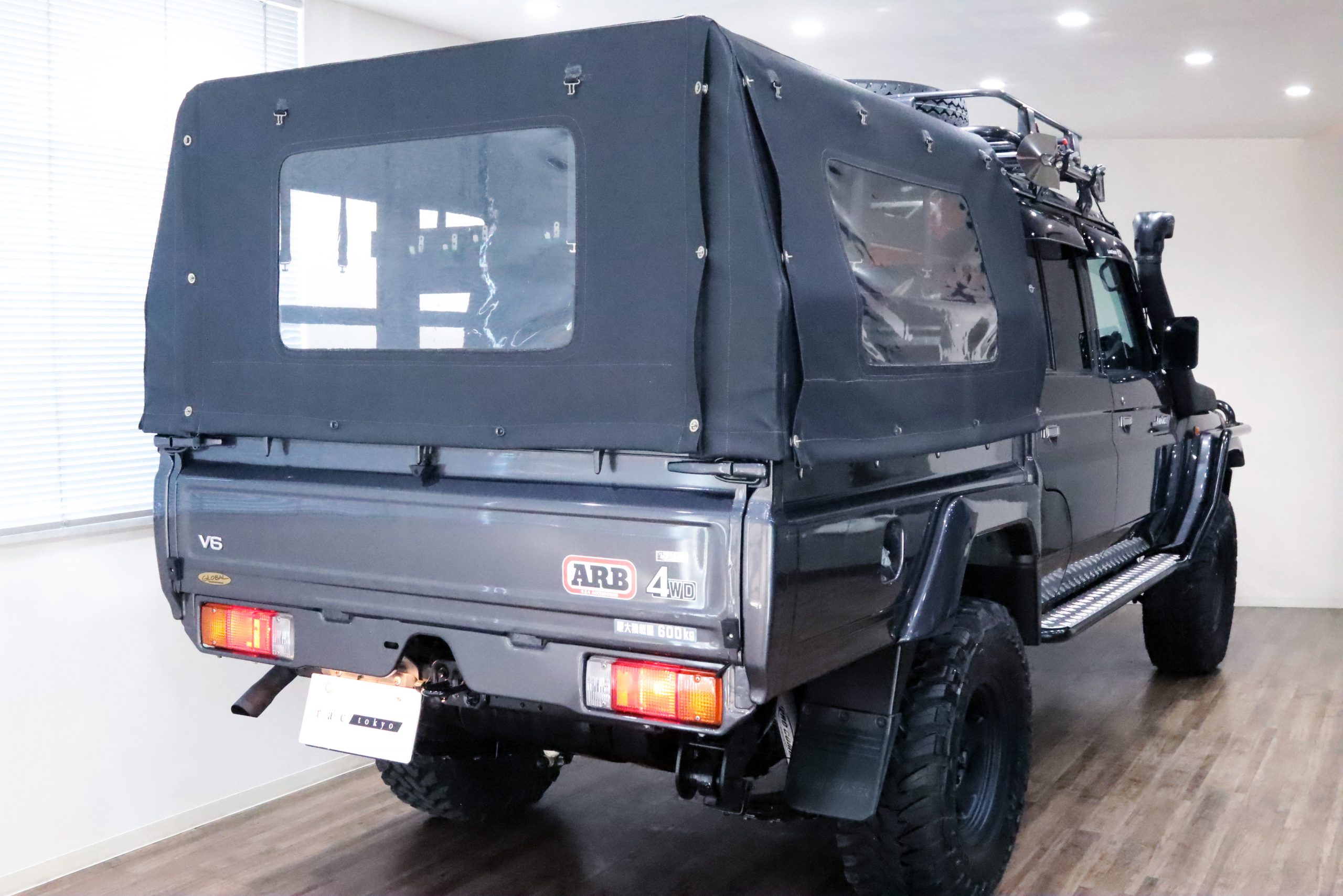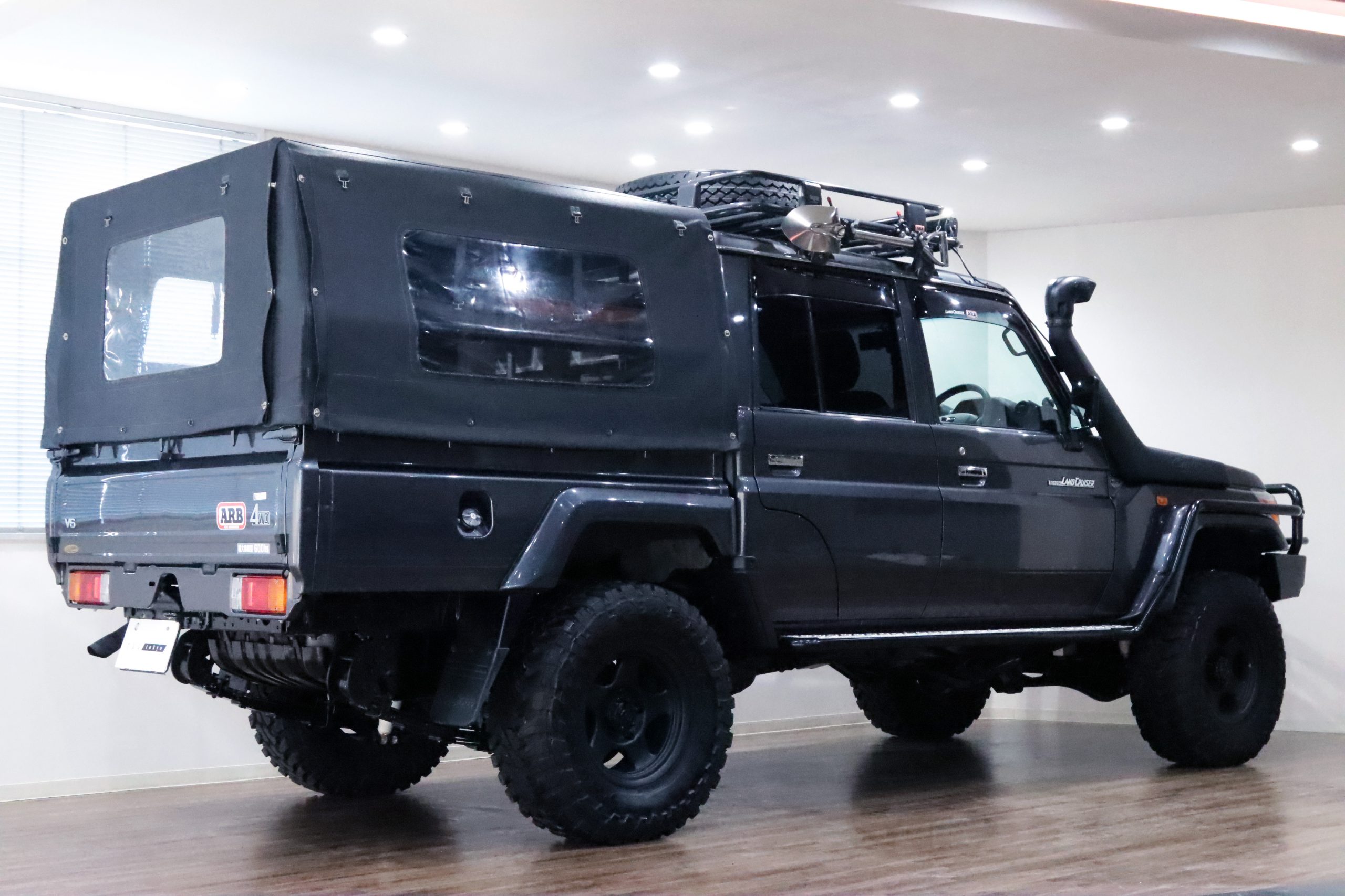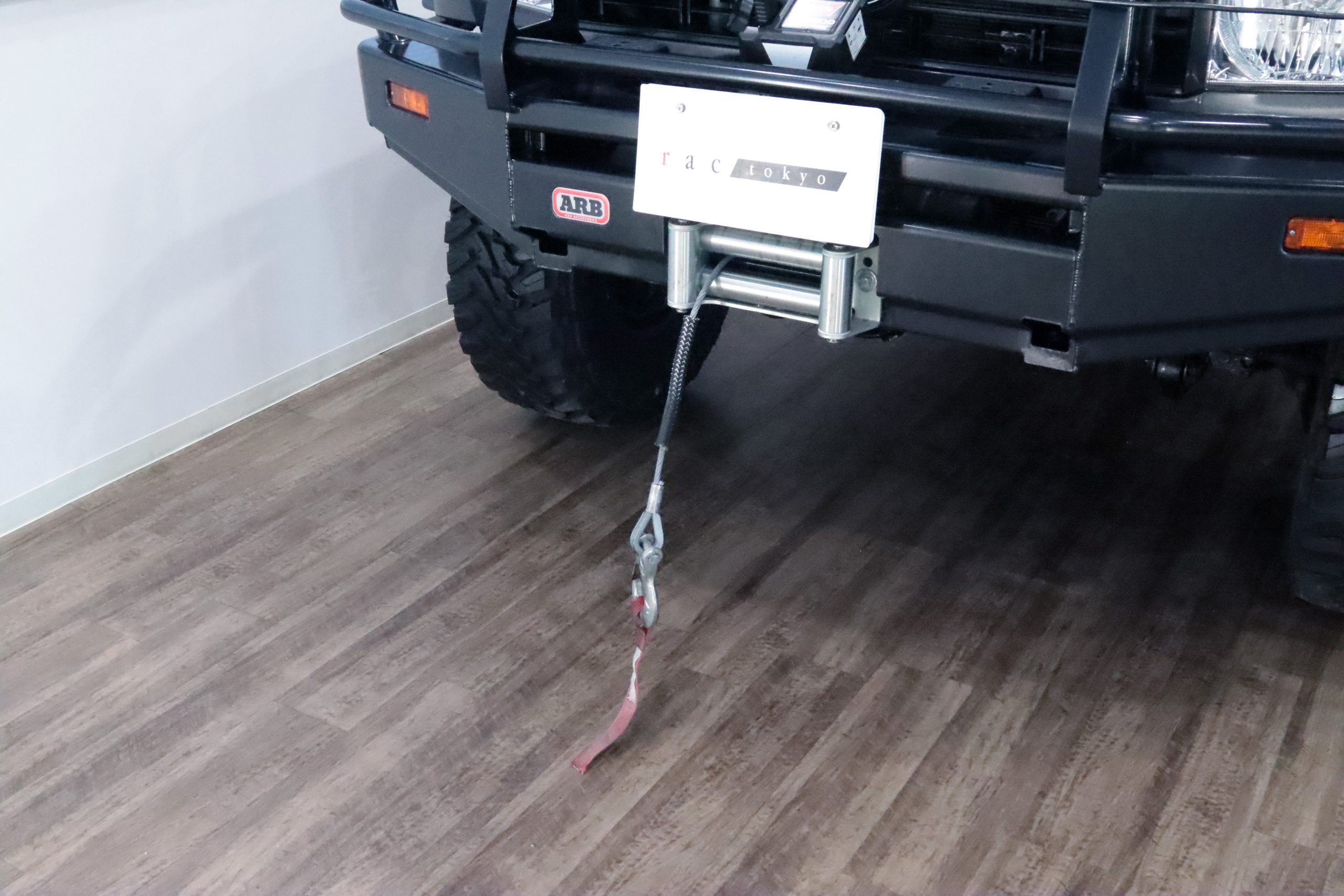 ARBコマーシャルバンパーからサイドレール、プロテクションサイドステップ、ルーフラック、サファリシュノーケル、WARNウィンチ等々、更にはインチアップしてキャンピング幌キットまで装着されていて、かなりのお金かけて仕上げてます!!
