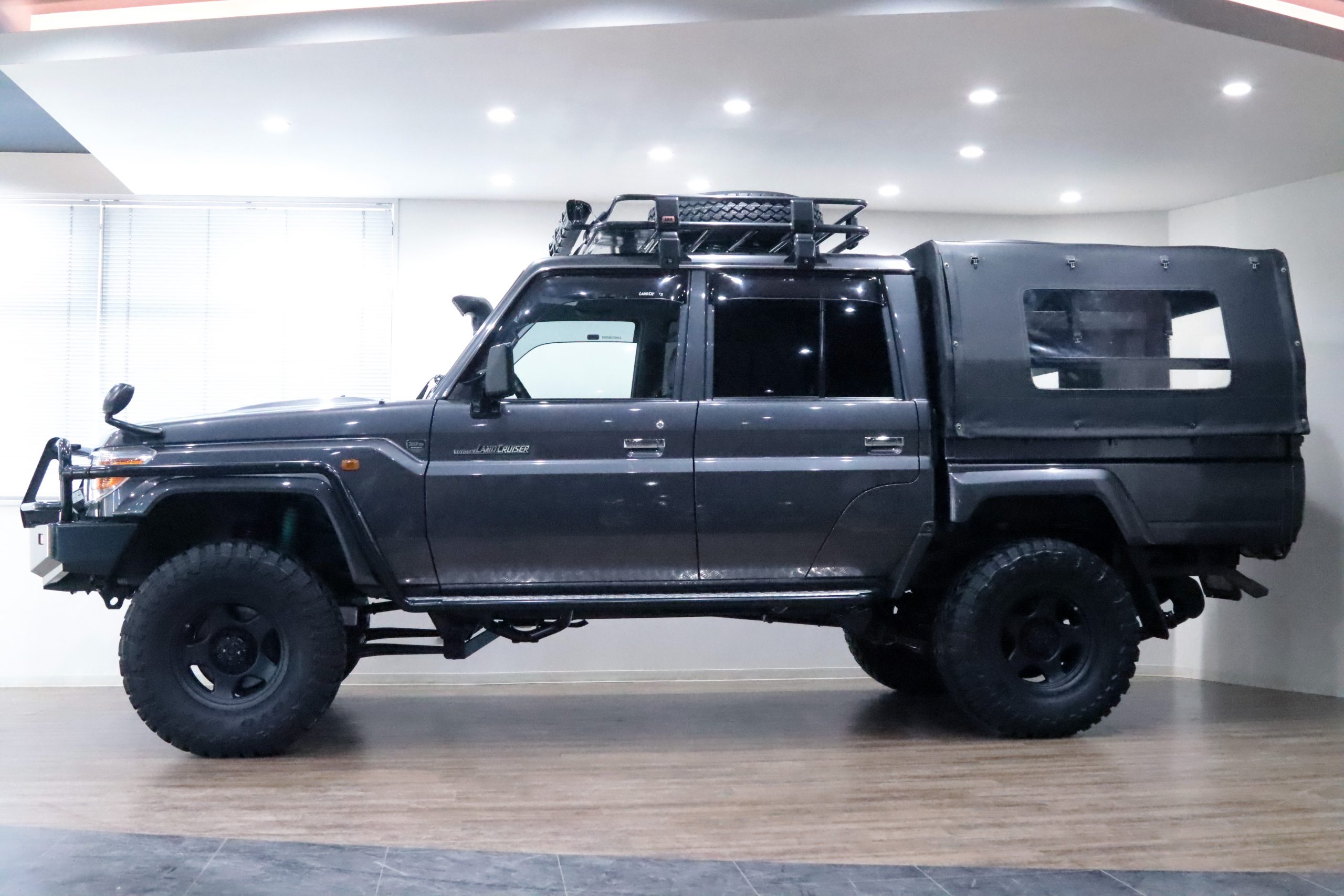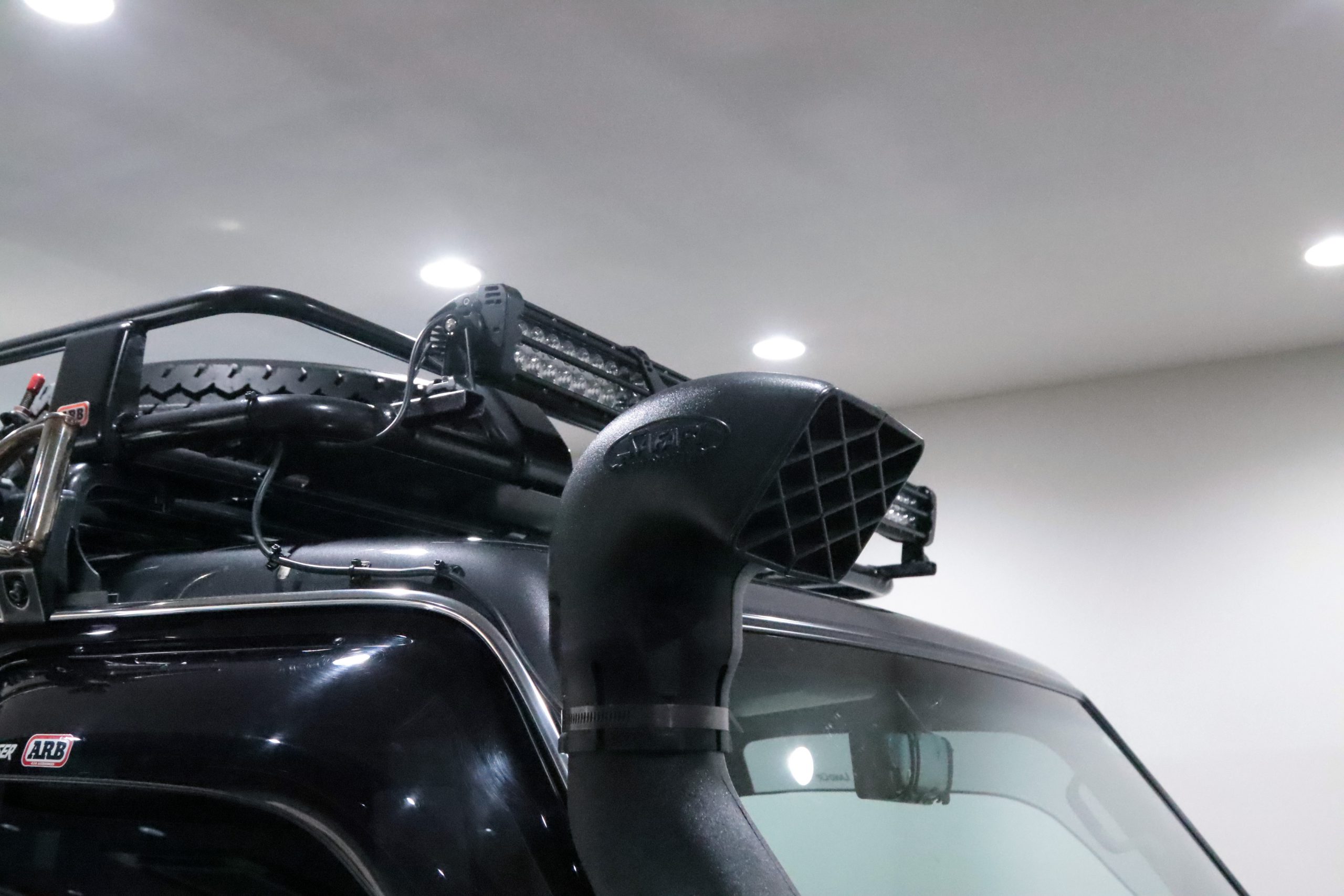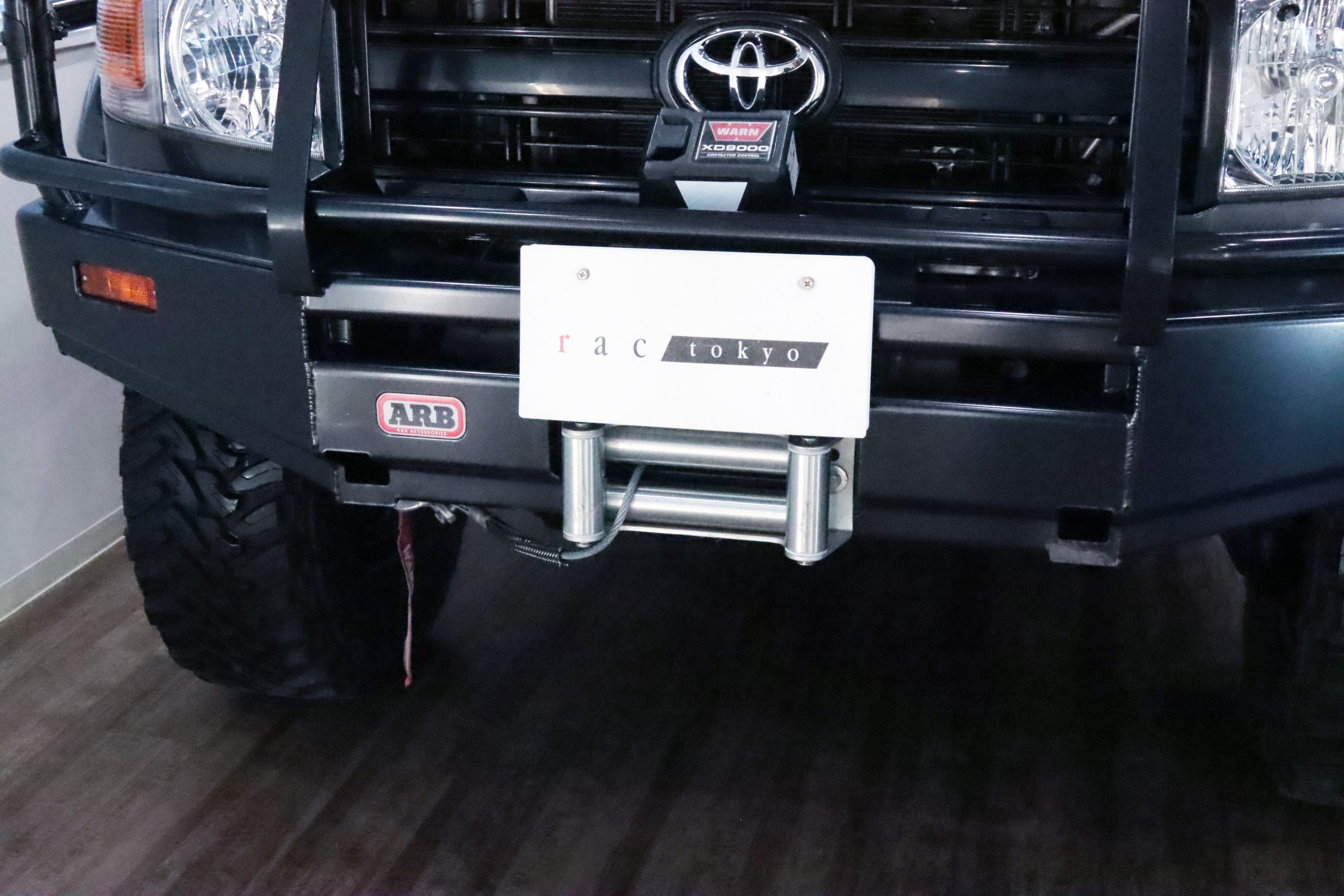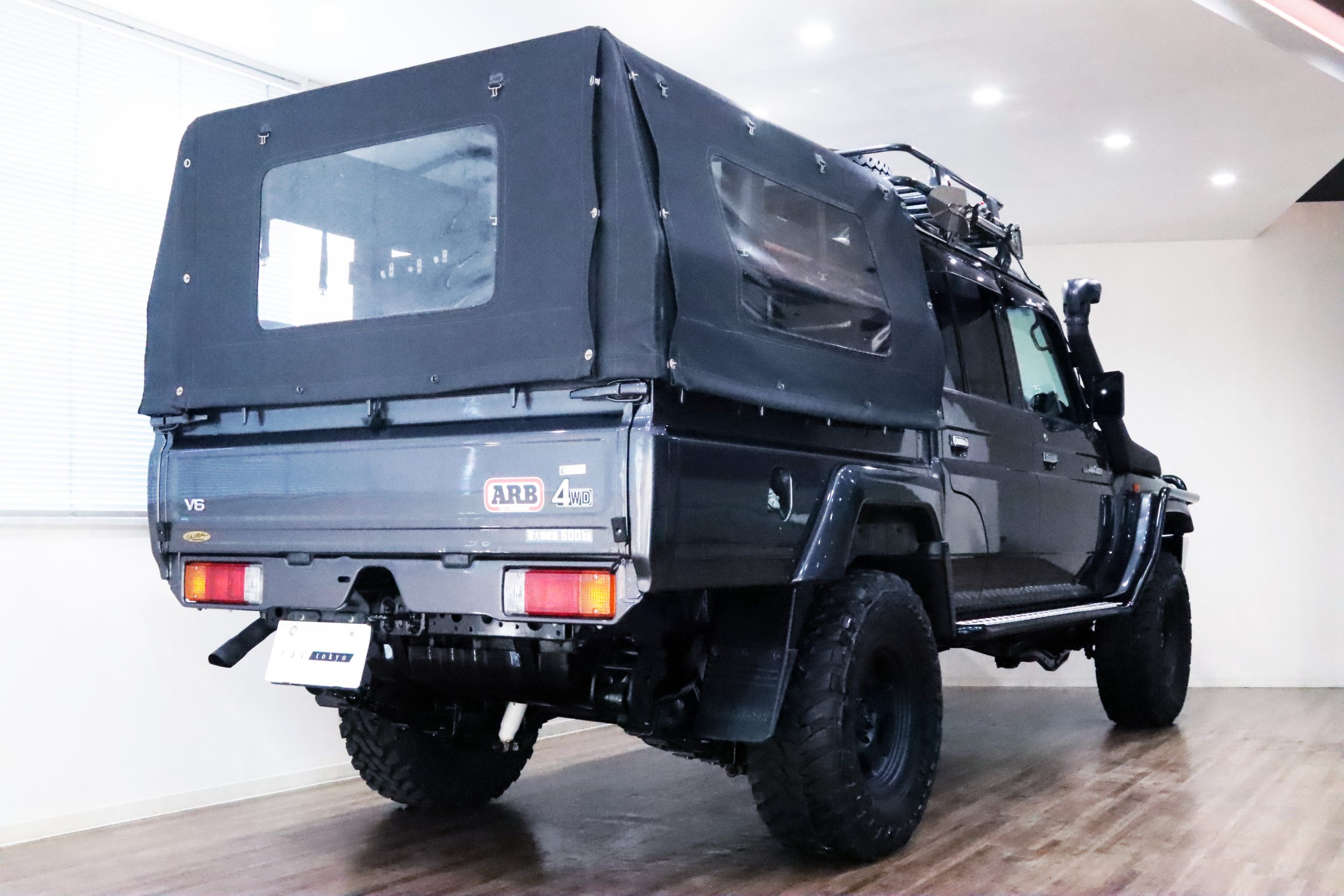 ARBコマーシャルバンパーからサイドレール、プロテクションサイドステップ、ルーフラック、サファリシュノーケル、WARNウィンチ等々、更にはインチアップしてキャンピング幌キットまで装着されていて、かなりのお金かけて仕上げてます!!