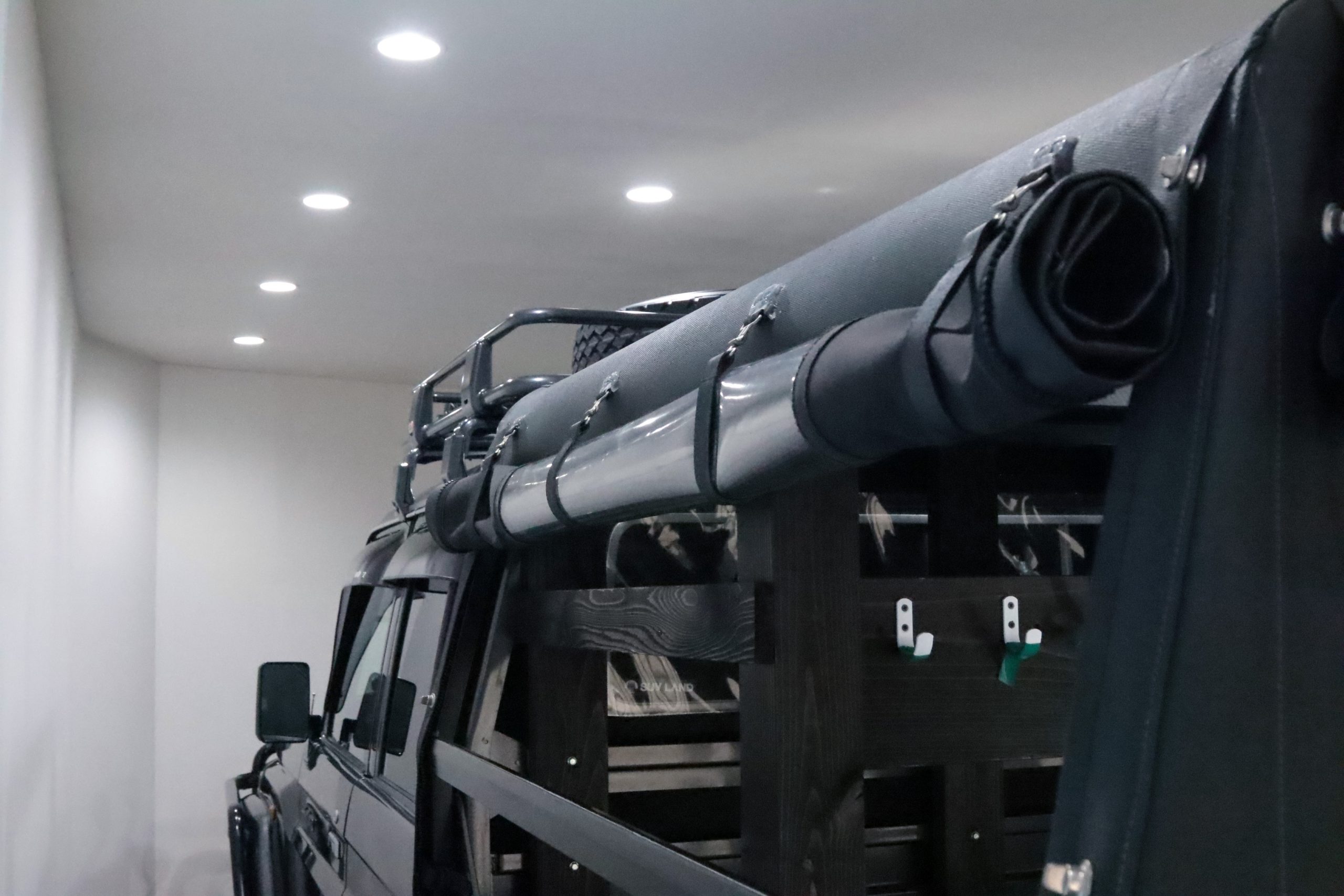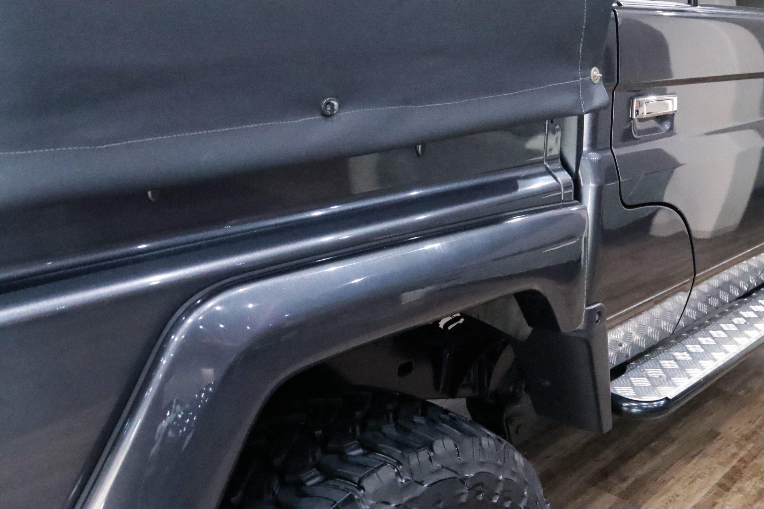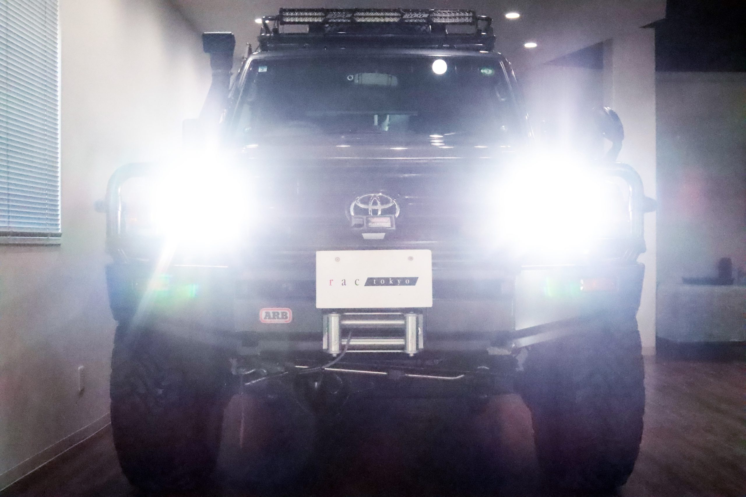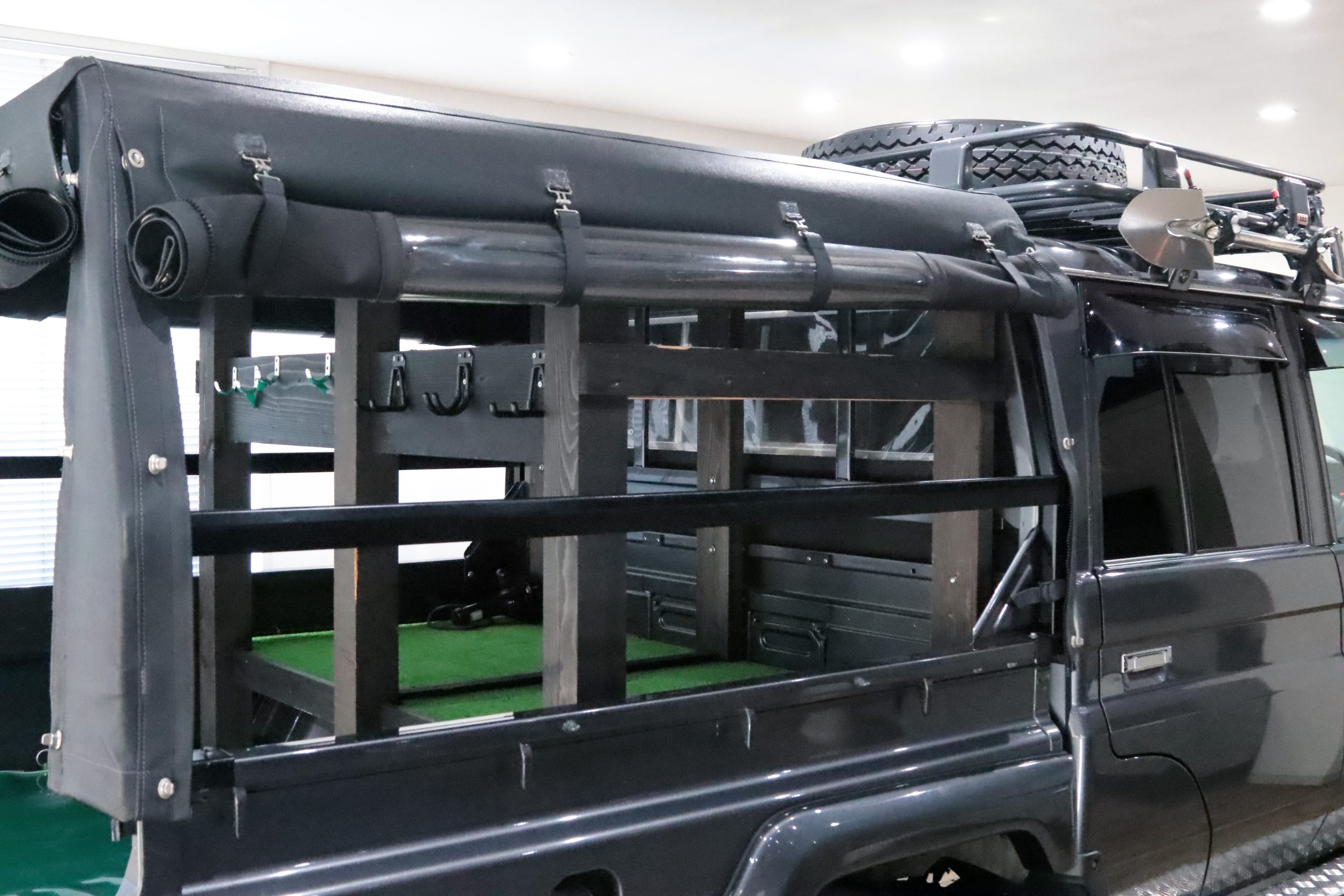 ARBコマーシャルバンパーからサイドレール、プロテクションサイドステップ、ルーフラック、サファリシュノーケル、WARNウィンチ等々、更にはインチアップしてキャンピング幌キットまで装着されていて、かなりのお金かけて仕上げてます!!